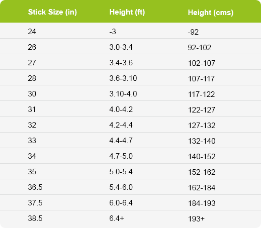 Selecting the right stick length is crucial for maintaining good posture and control. Most adult players use a 36.5-inch or 37.5-inch stick, depending on height. As a general rule, when standing upright, the top of the stick should reach your hip bone. A stick that is too long can reduce control, while one that is too short may affect reach and comfort during play. However choosing between the adult sizes there is no correct answer as its purely down to how comfortable the individual feels.